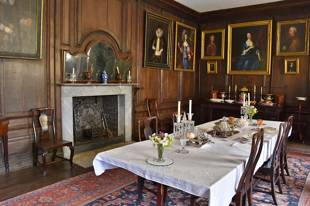 Canons Asbhy Dining Room © essentially-england.comThe visitors' route around the house then takes you into the panelled dining room. Although the panelling was quite dark, the room didn’t feel too oppressive. I suppose that was because of the smooth white ceiling and double aspect windows. At least there was enough light to be able to see the many paintings hung on the walls.
