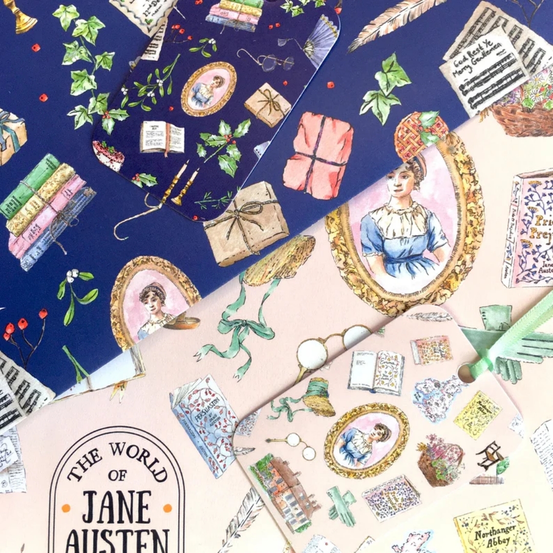 Take your gift giving a step further and add Austen-themed wrapping paper. This set is perfect to wrap any gift for Jane Austen fans, adding a charming literary touch to any present.