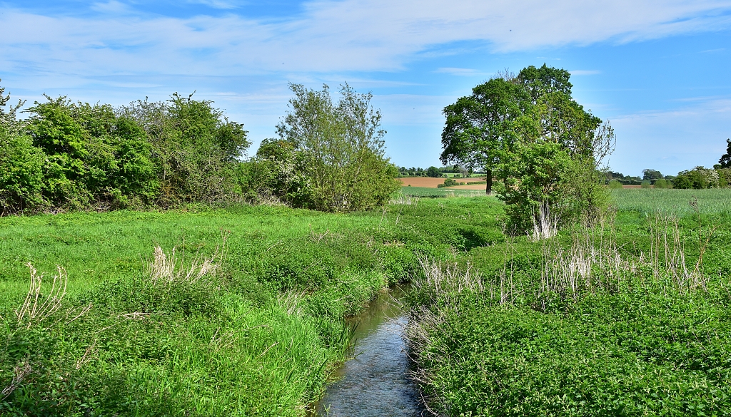 The River Tove © essentially-england.comUpon joining the new footpath, our route leaves it almost immediately by turning right into a grassy field with a hedge on the right. Walk through the field as it slopes down, through a gap in another hedge, and into more fields full of broad beans. This is as peaceful as it can get in the Northamptonshire countryside!