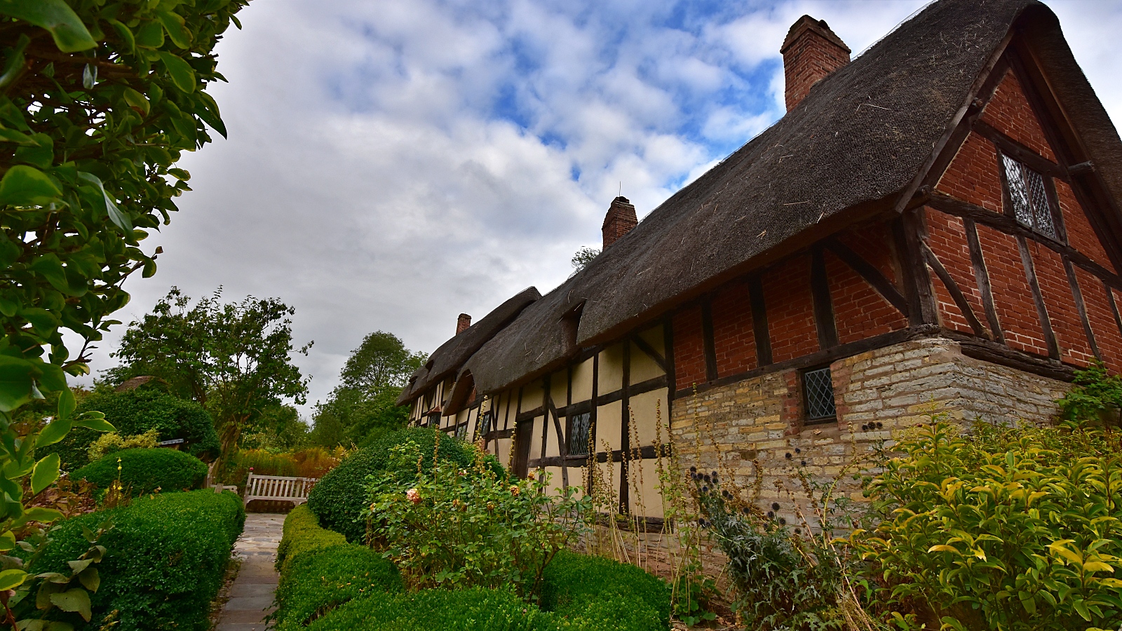 Birthplace of William Shakespeare with many old, half-timbered buildings and a peaceful riverside walk. |